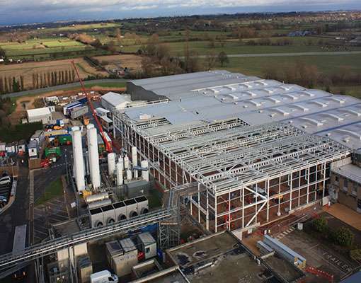 Construction Works – Demolition and bulk excavation. Drainage, CFA piling, reinforced concrete foundations, cellular beam pre-finished structural steel frame. High performance composite cladding, curtain walling and symphonic drainage. High tolerance concrete floor slab, Internal lining of walls noise containment, specialist hygienic finishes. Modification of existing abutting building to suit new production methods. Management & co-ordination of clients M&E and plant subcontractors.